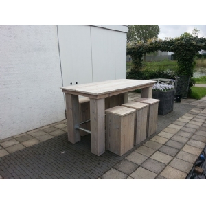 Bartafel met stevige pilaar en groot steigerhouten blad. Ideaal voor diverse feesten en partijen of voor thuis.